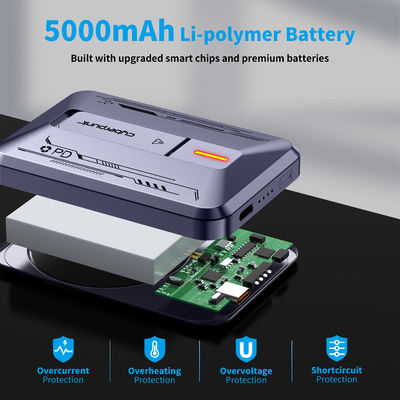 磁気電源バンクは5千mAhの容量で デバイスを何度も充電できるので リポリマー電池を使います安全性と耐久性で知られています.